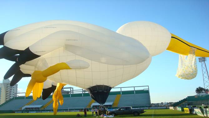 Aconteceu na tarde deste sábado 10 de Abril, o lançamento do Festival Mercosul de Balonismo em Chapecó – SC, ás 16.30 hs no Estádio Indio Condá em Chapecó, momento, em que o piloto Mauro Leandro Chemin da Snap Balonismo de Curitiba – PR, auxiliado pelo piloto Irun Maurici Nicoli da Bélgica sobrevoaram a cidade a bordo do balão em formato de cegonha, com 52 metros de comprimento.